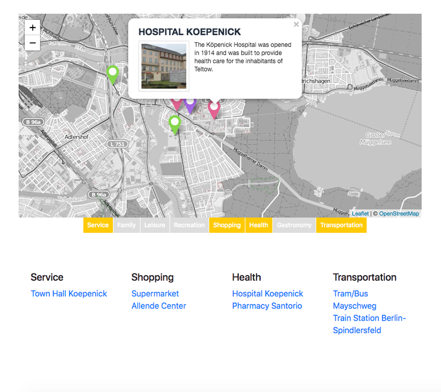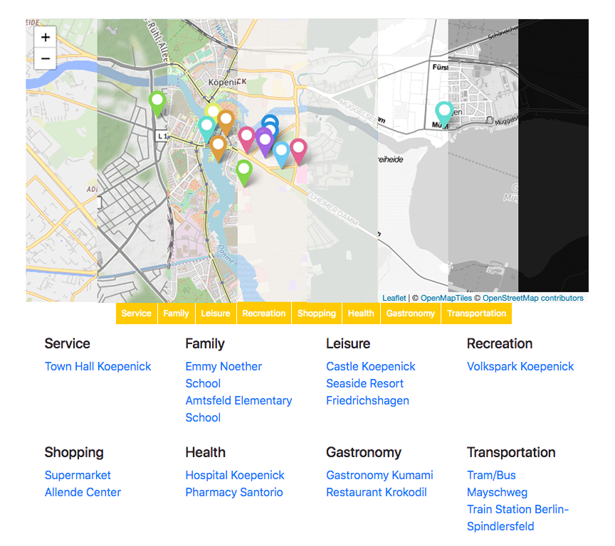 - Categorized markers: Organize locations, products or destinations into custom categories for a clear presentation.